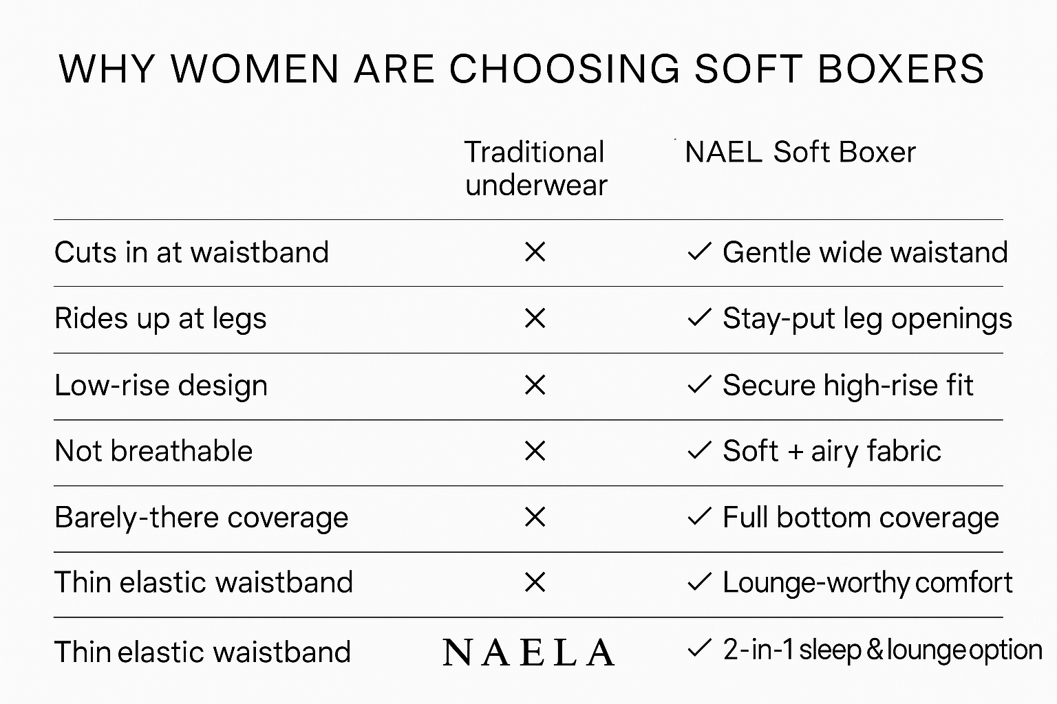 Explore NAELA Soft Boxers — soft on skin, made for real women.